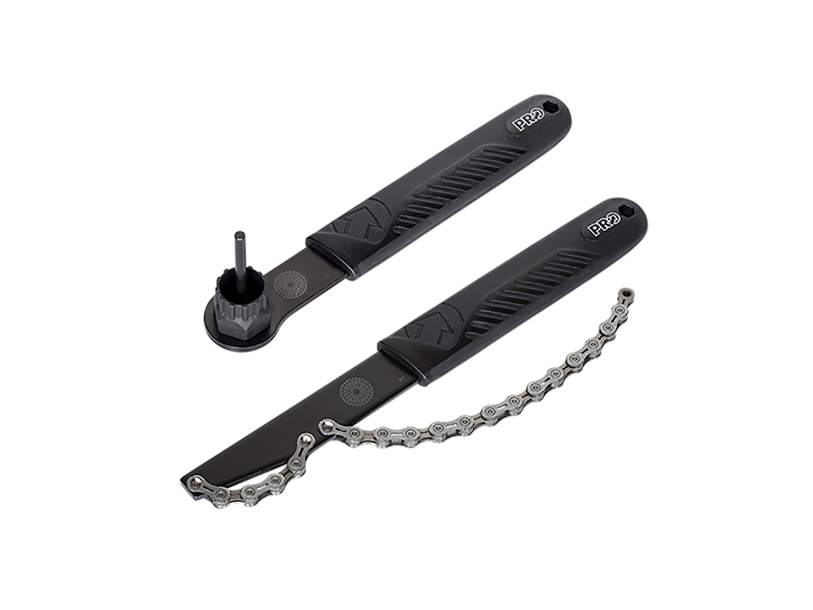 Dette PRO-aftrækkersæt bruges til demontering af en kassette fra Shimano eller Sram. For at kunne løsne låseringen (Lock Ring) på kassetten skal disse 2 stykker værktøj benyttes. Den ene til at holde kassetten med og den anden til selve låseringen (Lock Ring).