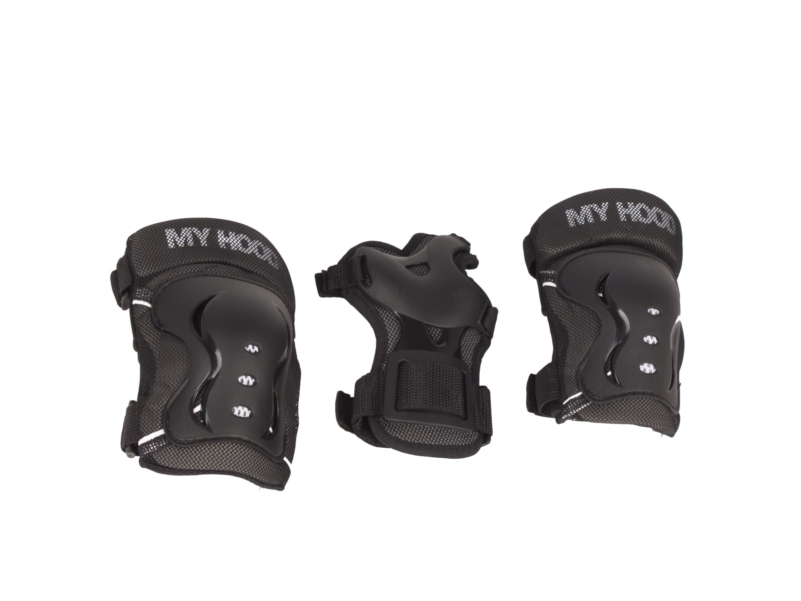 Anvendelse Dette My Hoods beskyttelsessæt indeholder beskyttelse til knæ, albuer og håndled. Sættet er designet til brug på skateboards, rulleskøjter, løbehjul eller BMX.