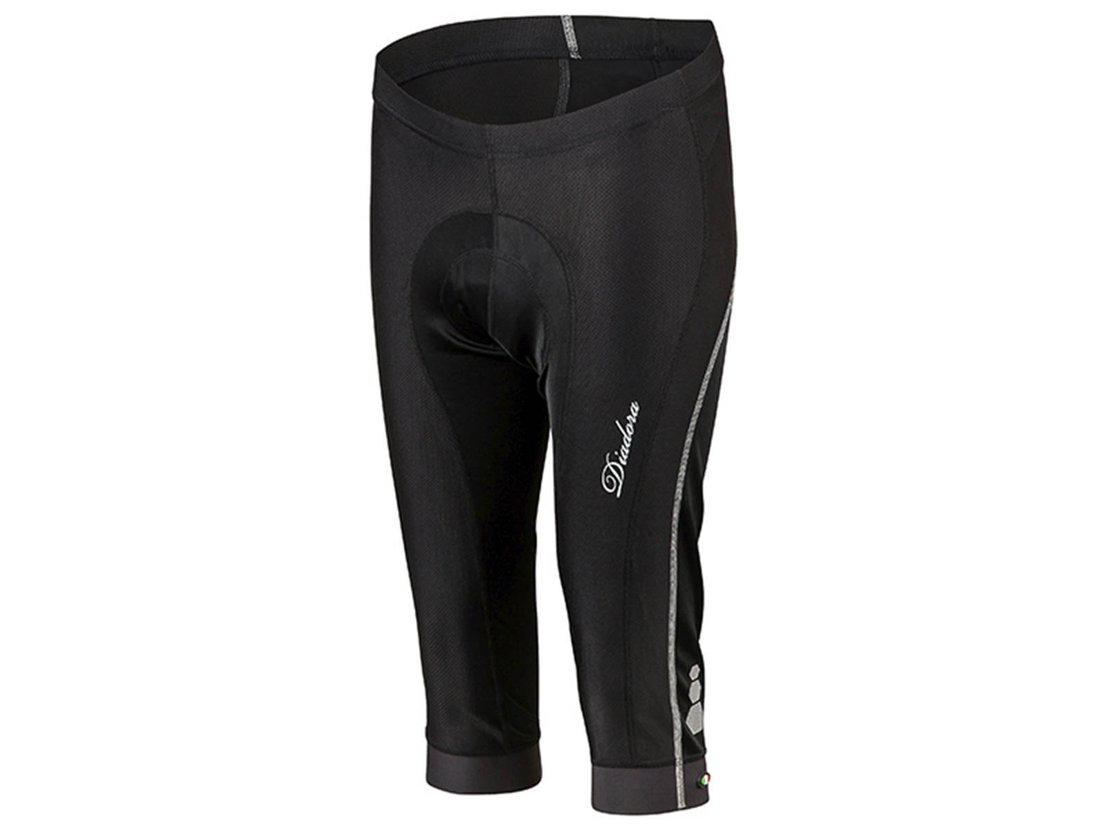 Pirat cykels knickers uden seler fra Diadora, er en funktionel og tætsiddende buks, med mange egenskaber. Buksen er med ergonomisk pude med paneler som giver behagelig siddekomfort og desuden har buksen elastik ved livet. Knickers er udviklet i et svedtransporterende materiale, der sammen med den tætte pasform, yder høj komfort når du træner. Materialet leder sveden væk fra kroppen, og opretholder den rette kropstemperatur, så du derved undgår at blive overophedet eller nedkølet. Bagpå er der en mindre udvendig lomme med lynlås, som er stor nok til nøgler, kreditkort og lignende.