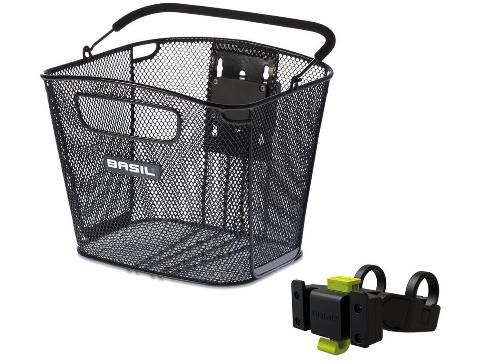 Denne cykelkurv fra Basil er egnet til montering på cyklens styr og er let at på- og afmontere efter behov. Der medfølger et monteringsbeslag som let monteres på cyklen. Modellen er også egnet til brug på E-bikes.