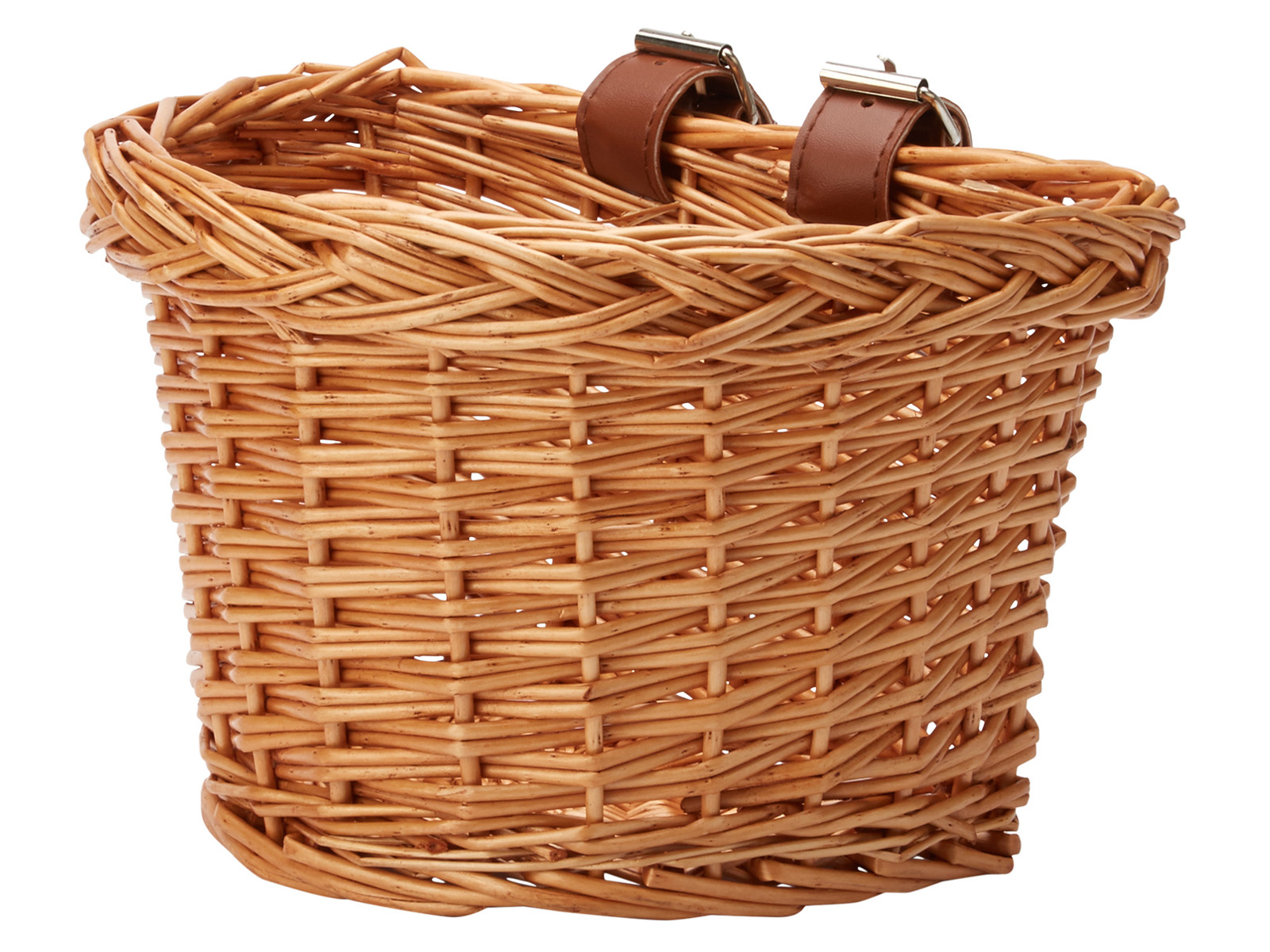 De medfølgende stropper i læder kommer til at gøre det nemt, at skulle montere denne lille, flotte cykelkurv i pil.