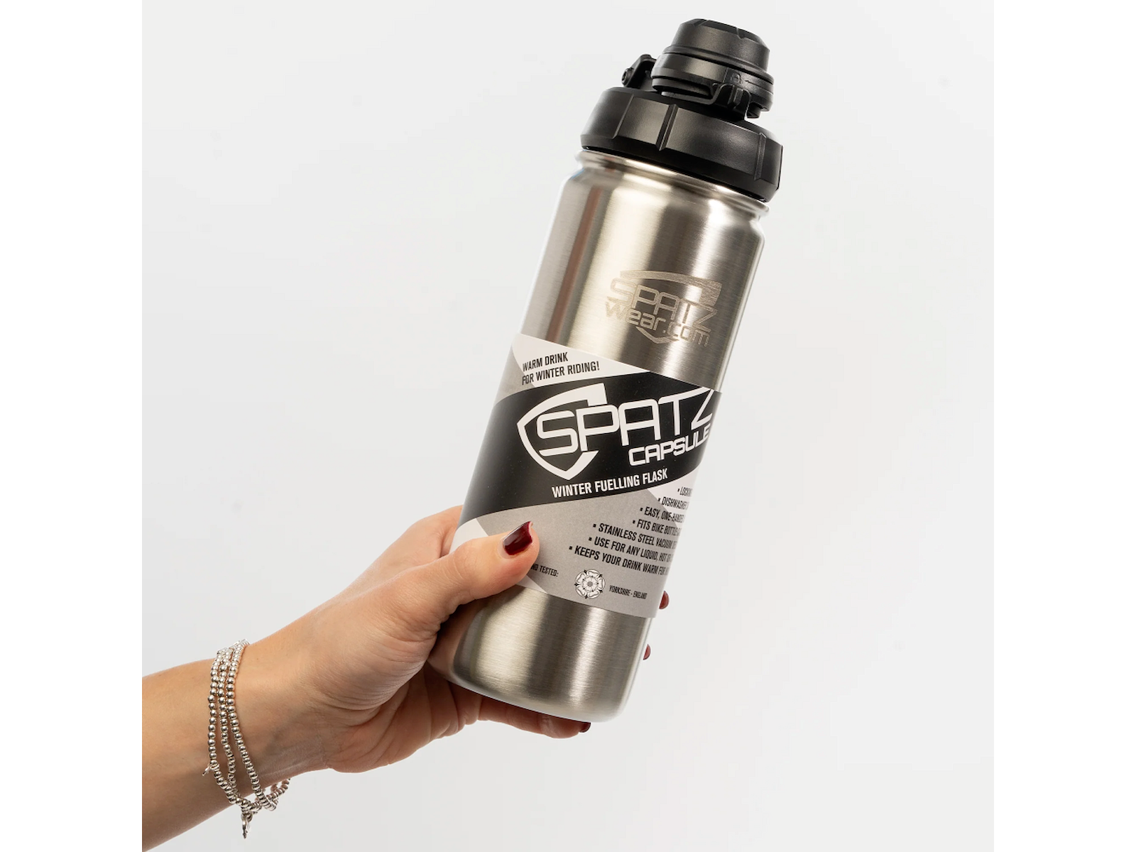 SpatzWear WINTER CAPSULE er et ideelt valg for både passionerede cyklister og outdoorentusiaster, der bevæger sig ud i vintervejret. Den passer perfekt i rygsække og holdere, og gør det let at holde sig hydreret under krævende forhold. Drikkedunken henvender sig til alle, der ønsker pålideligt udstyr, som kan stå distancen - også når temperaturen dykker.