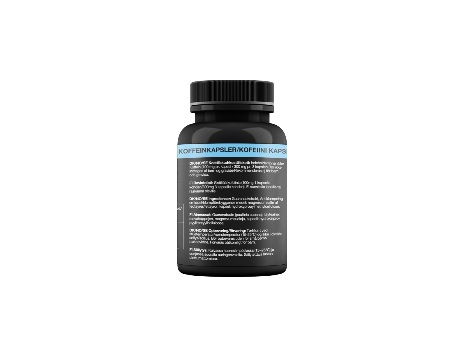 Højt koffeinindhold (100 mg koffein pr. kapsel). Bør ikke indtages af børn, gravide eller ammende kvinder