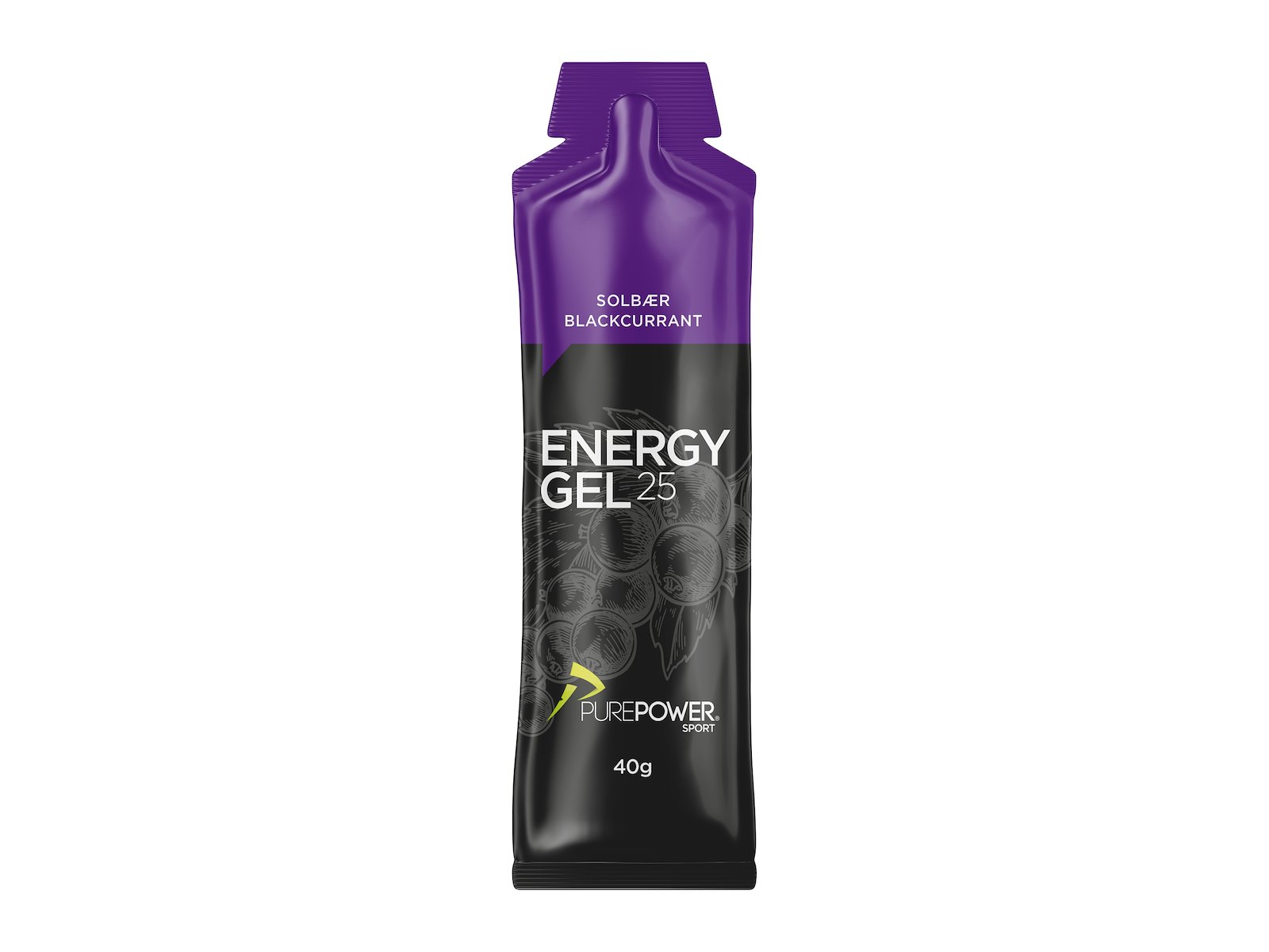 PurePower EnergyGel Solbær er en energigel med en sød og frugtig smag af solbær, som leder tankerne hen på en læskende solbærsaft. Gelens konsistens er væsentlig mere flydende end tilsvarende energigels og er derfor nem at trykke ud i munden og synke, uden vand efterfølgende. Samtidig efterlader den ikke en fedtet fornemmelse i munden efter indtagelse.