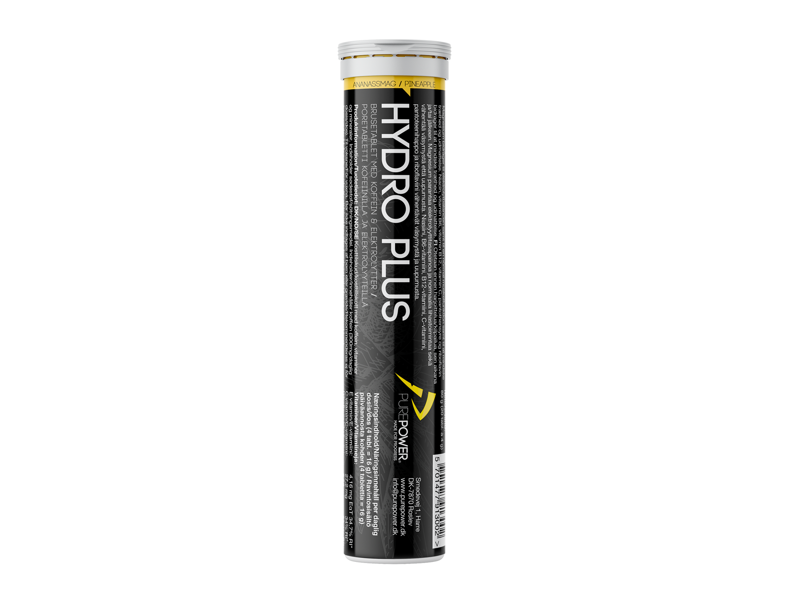 Surhedsregulerende middel: E330. Konsistensmiddel: E420, maltodextrin, kalium, magnesium, aroma, koffein konsistensmiddel: E1521, natrium sødestof: E955, L-ascorbinsyre (vitamin C), zinkcitrat, DL-alfa-toco-pherylacetat (vitamin E), nicotinamid (niacin), D-kalciumpantothenat (pantotensyre), cyanocobalamin (vitamin B12), pyridoxin-hydroclorid (vitamin B6), riboflavin (vitamin B2), D-biotin (biotin).
