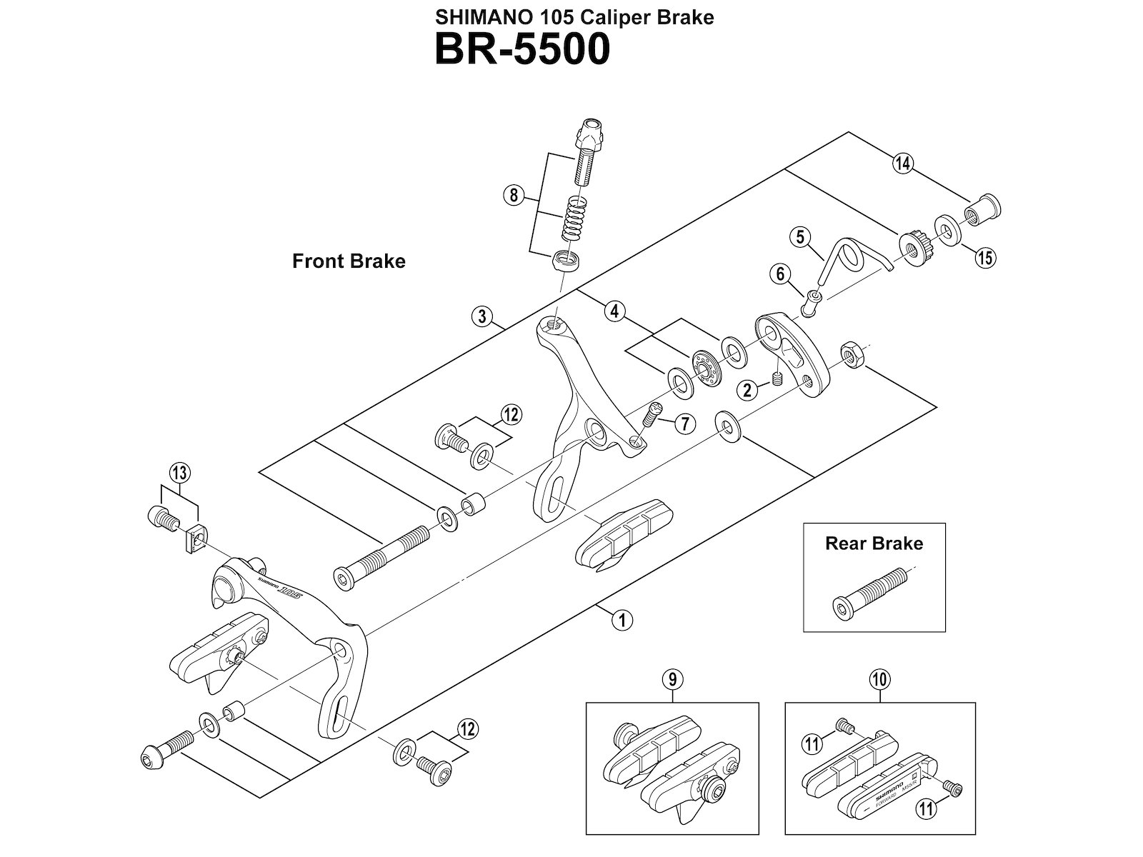 Shimano pivot bolt bag 36mm lang til BR-5500