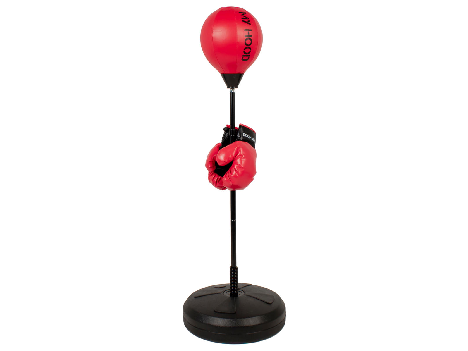 Modellen er justerbar i højden og der medfølger 2 bløde boksehandsker.