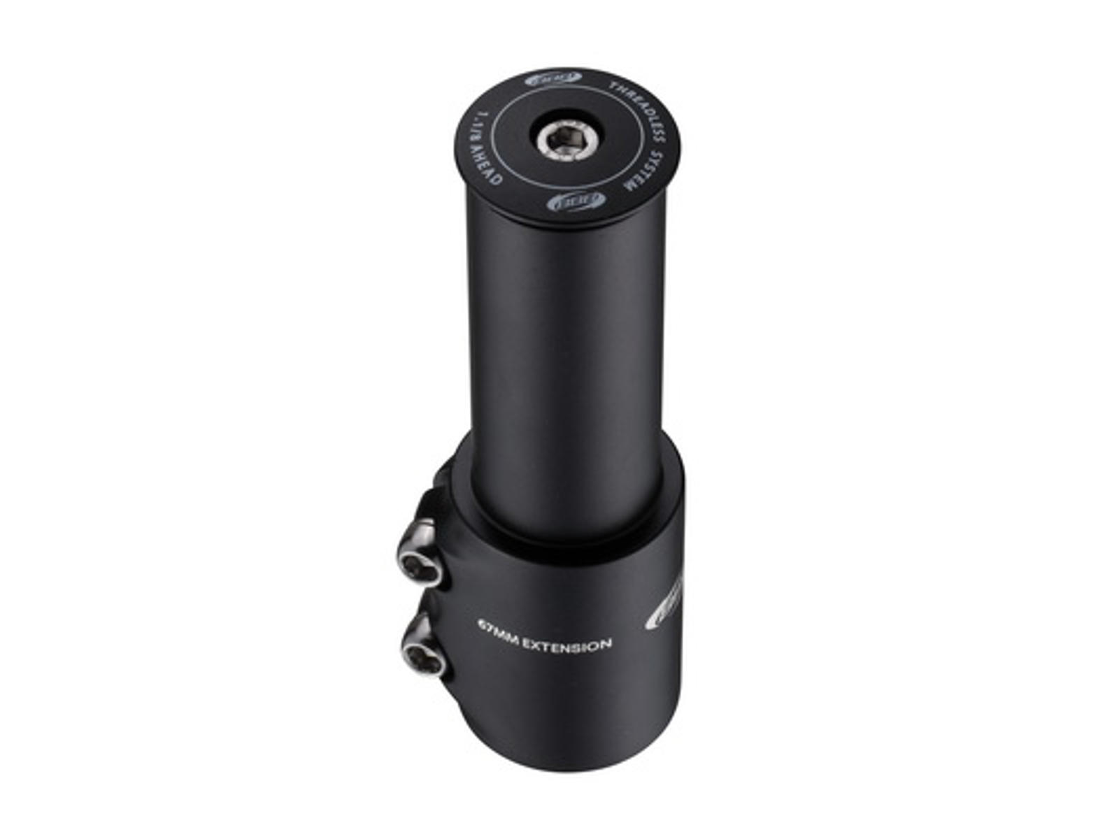 Ahead forlænger til 1 1/8" forgaffel. 117 mm høj. Matsort.