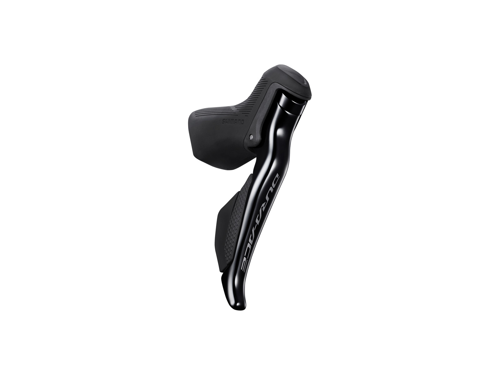 Dette Shimano Dura Ace Di2 højre skifte- og bremsegreb til elektronisk gearskifte og mekaniske fælgbremser. Skifte- og bremsegrebet hører til Shimano 12 gears komponenter og anvendes til landevejscykler.
