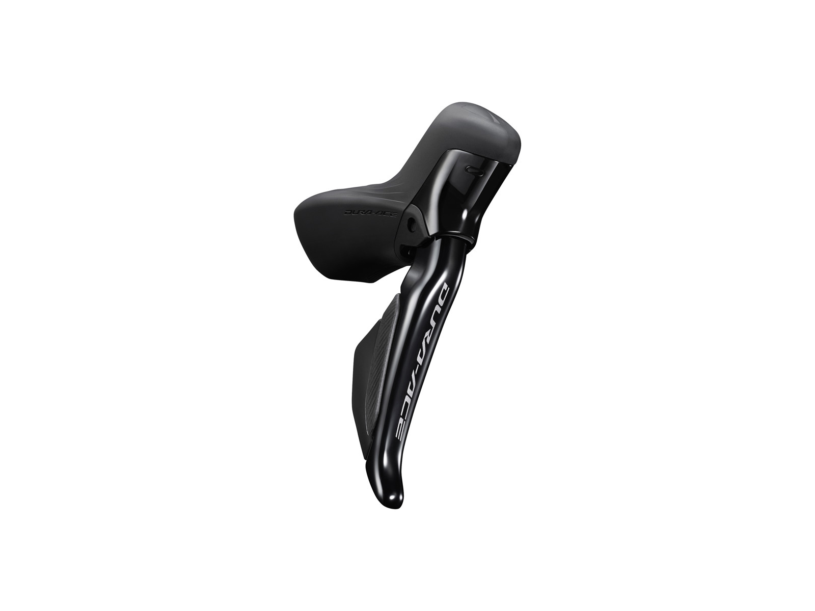 Dette Shimano Dura Ace Di2 højre skifte- og bremsegreb til elektronisk gearskifte og hydrauliske skivebremser. Skifte- og bremsegrebet hører til Shimano 12 gears komponenter og anvendes til landevejscykler.