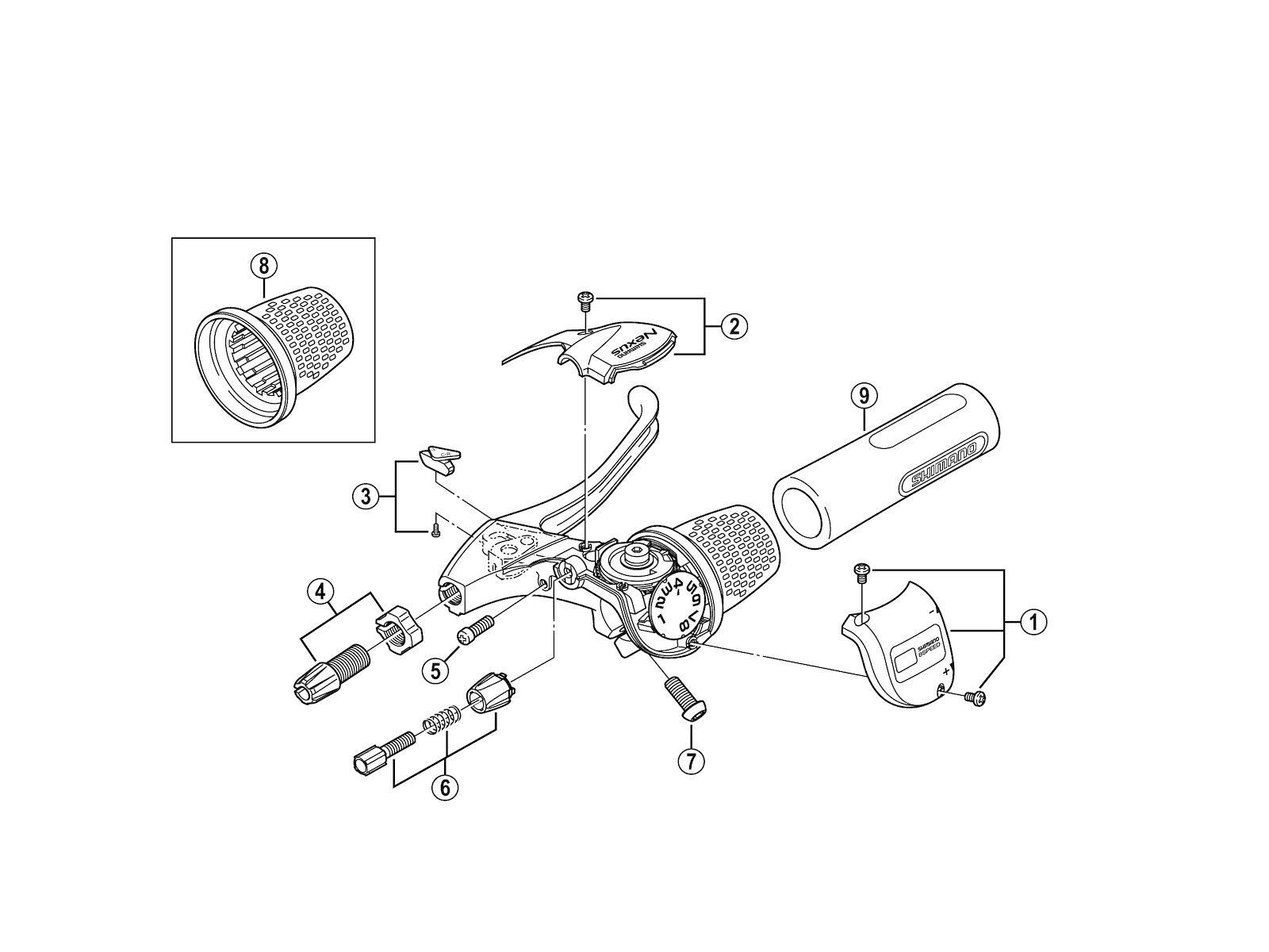 Shimano Nexus 8 - Dæksel til revo greb model SB-8S20