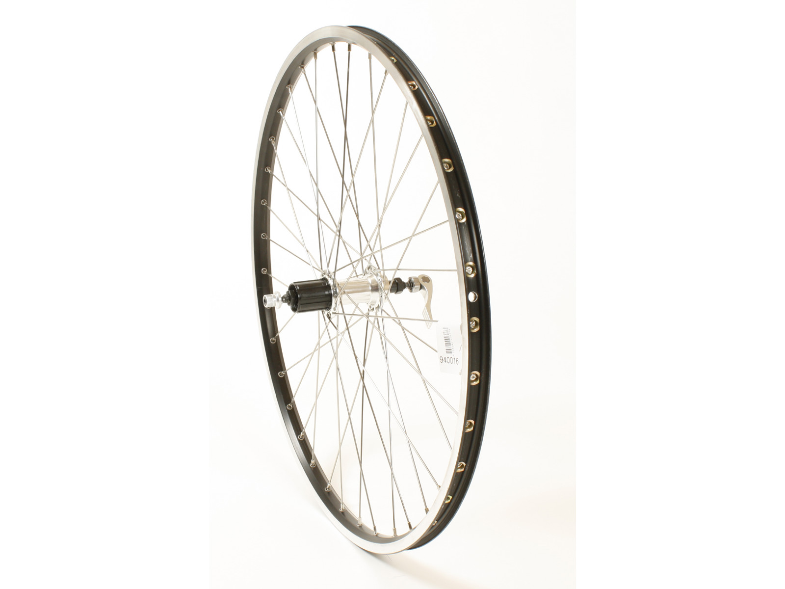Dette solide baghjul er lavet i let aluminium. Der er nippelforstærkning på fælgen.