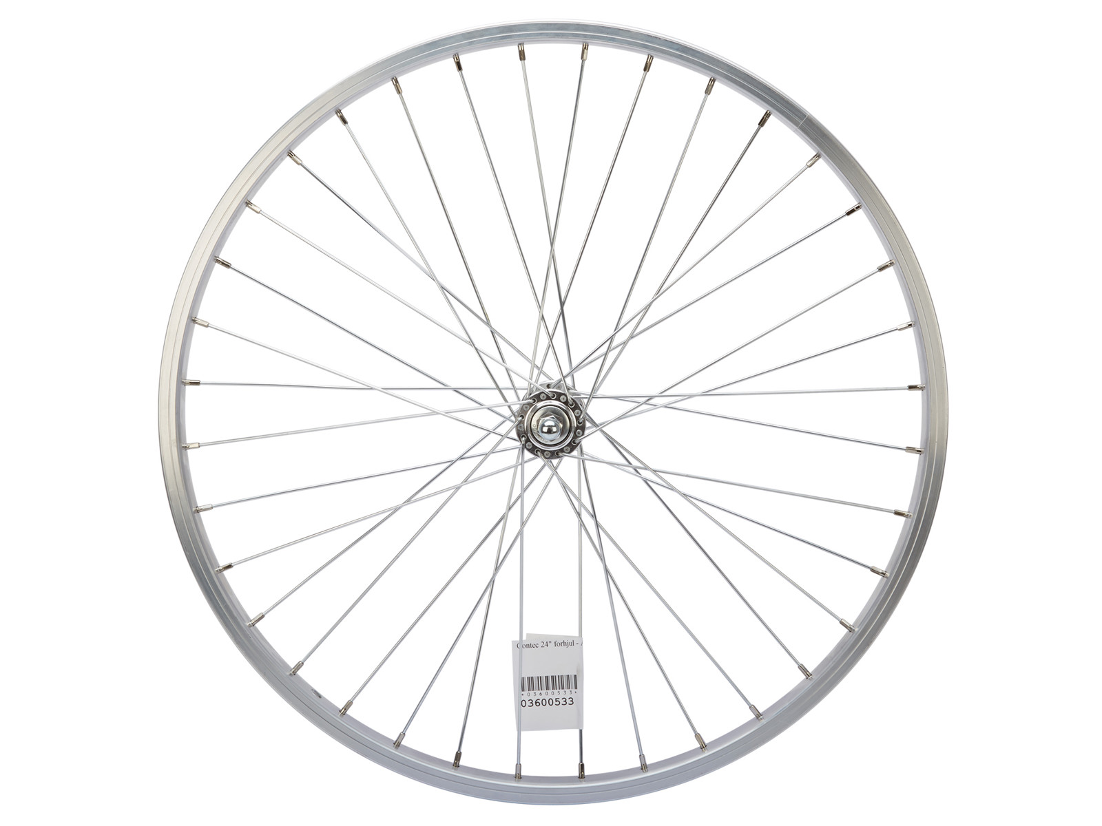 Dette forhjul passer til en 24" børnecykel. Hjulet er lavet i aluminium og og har 36 x 2 mm. eger som er forzinket.