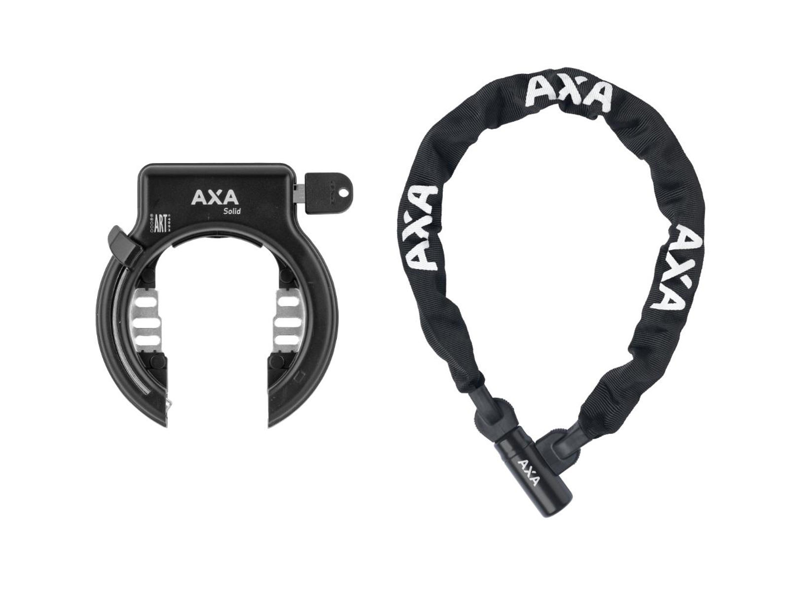 Dette kombinationssæt består af en AXA Solid ringlås med plug in, samt en LINQ City 100 kædelås.