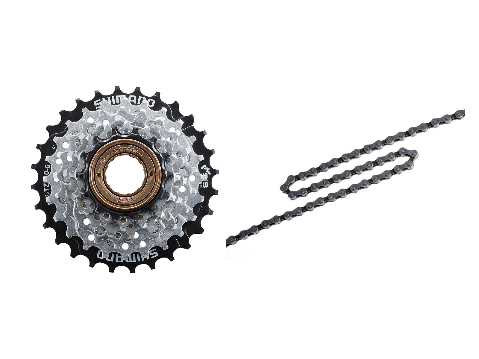 Når man skifter sin frikrans så skal der også skiftes kæde og begge dele får du i denne bundle. Sættet består af Shimano TZ510 6 gears frikrans med gearinterval 14-28 tand og Shimano HG40 kæde som passer dertil og desuden er der samle led med til kæden.