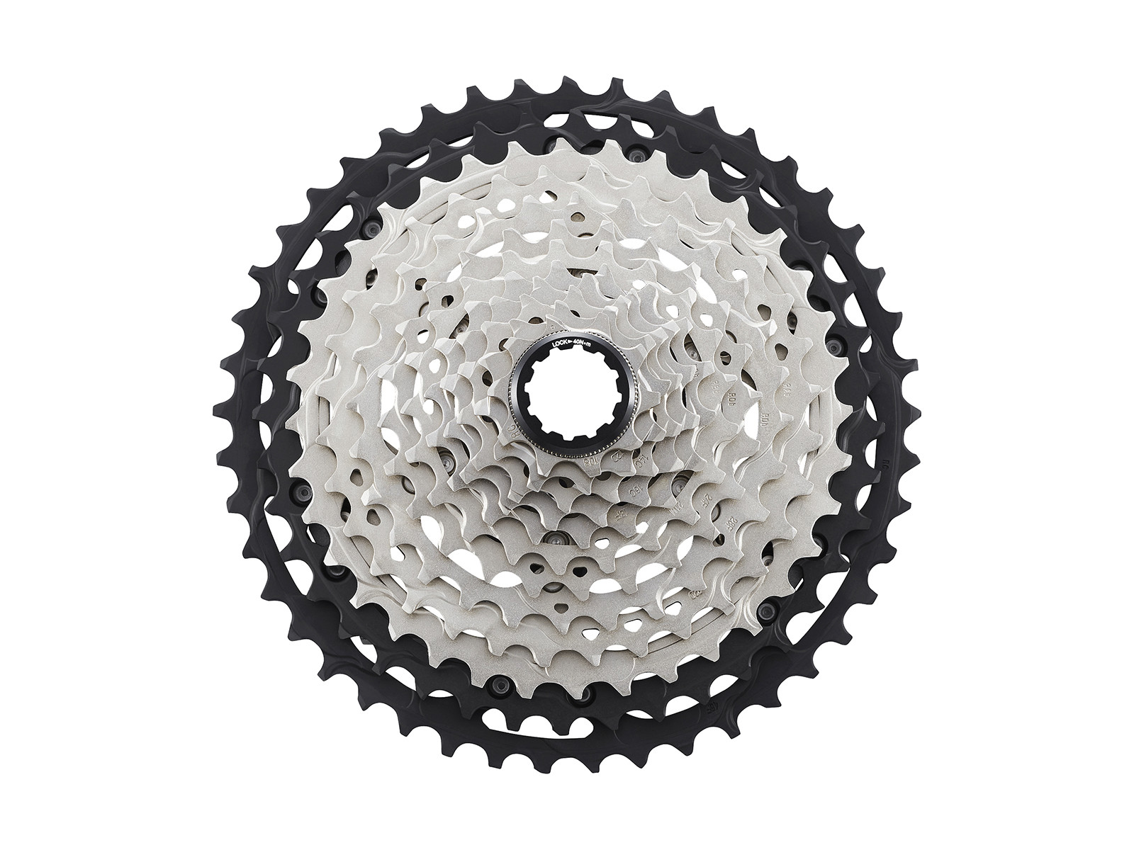 Når du monterer kassetten skal du være opmærksom på, at der på den ene side af tandhjulet står skrift, og denne side skal altid vende udad. Vi anbefaler, at du følger Shimanos anvisninger, når du skal montere denne kassette. Låseringen skal strammes med specialværktøj som passer i not gangene (eks. Shimano værktøj TL-LR15). Tilspændingsmoment skal være 30 - 50 Nm.