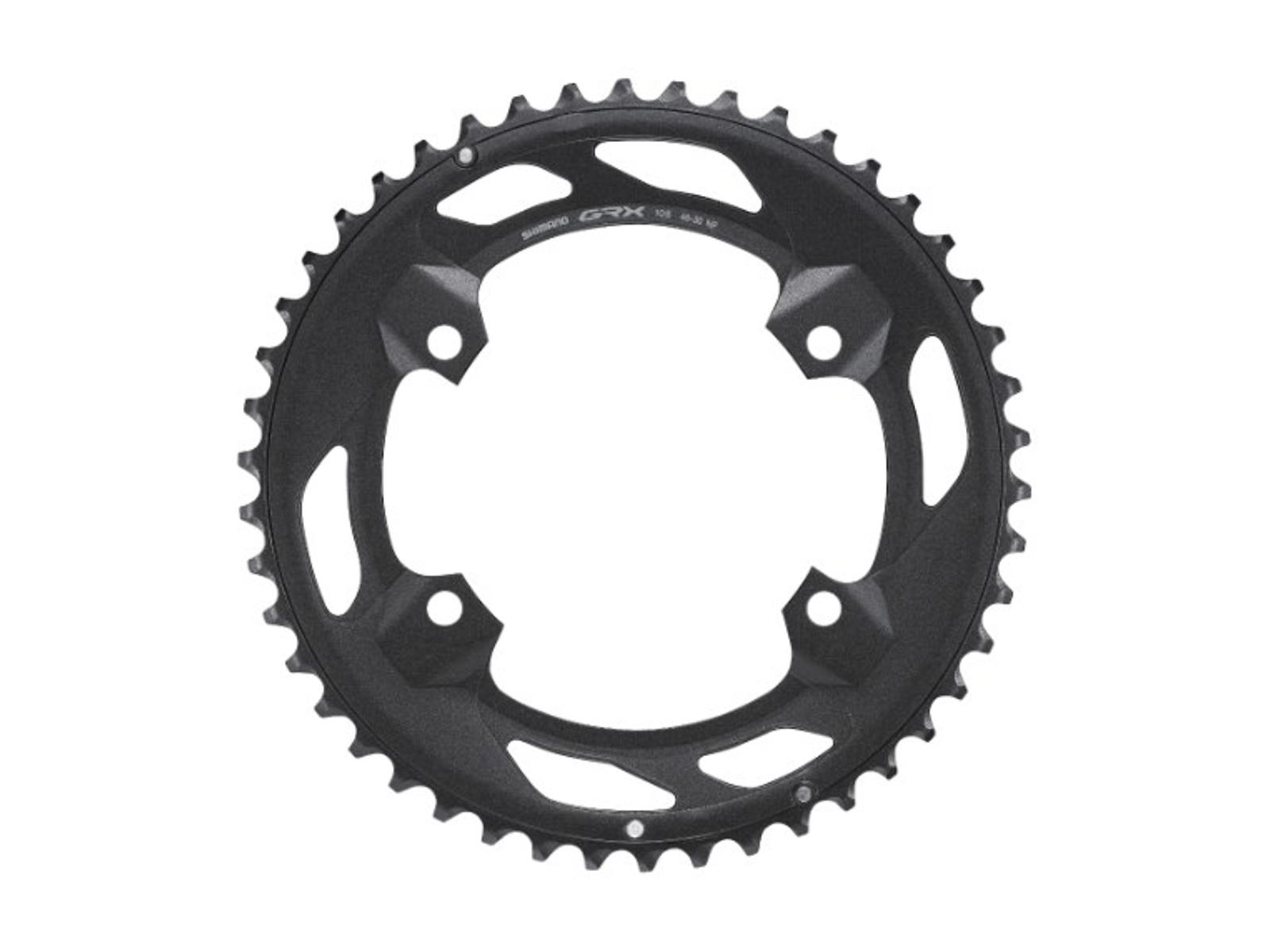 Denne 46 tands klinge passer til Shimano GRX dobbelt kranksæt model FC-RX600 og passer til kombination med 10 eller 11 gears kassette på baghjulet.