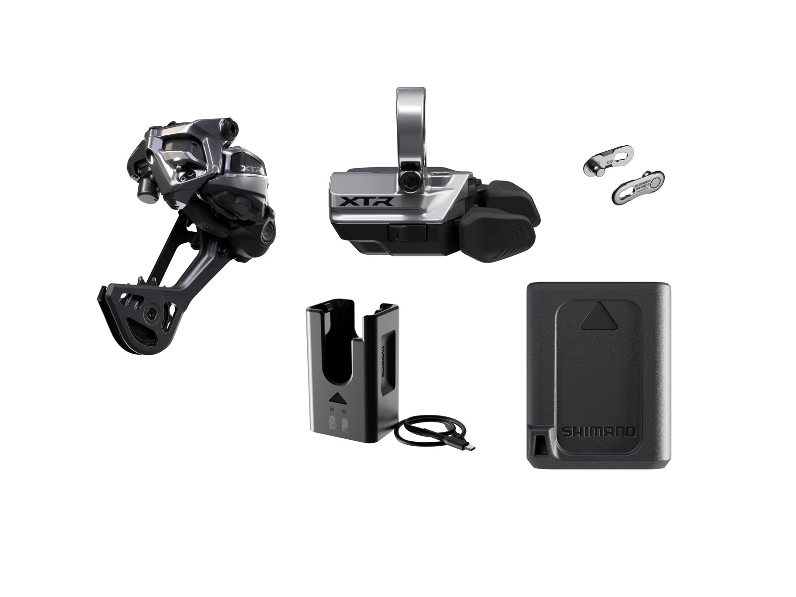 Shimano XTR M9200 SGS opgraderingskit er en komplet løsning til dig, der vil opgradere til trådløs Di2-gearskift med Shimanos mest avancerede MTB-komponenter. Med XTR bagskifter, præcis trigger, kraftfuldt batteri og oplader får du alt, du skal bruge for at gøre din cykel klar til elektronisk 12-speed performance – med lynhurtige gearskift og et rent, kabelfrit cockpit.