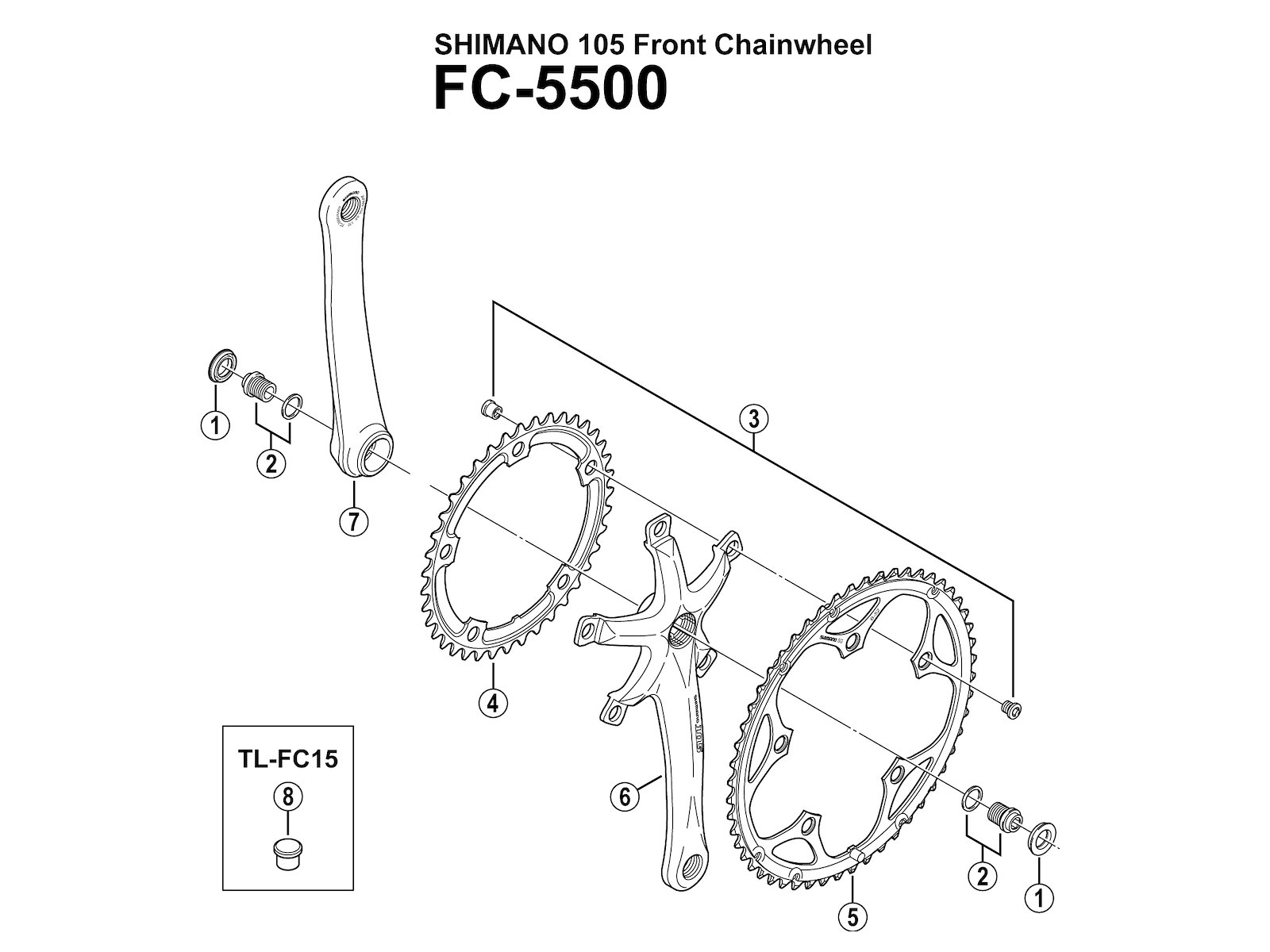 Shimano 105- pedalarm højre 175mm lang til FC-5500