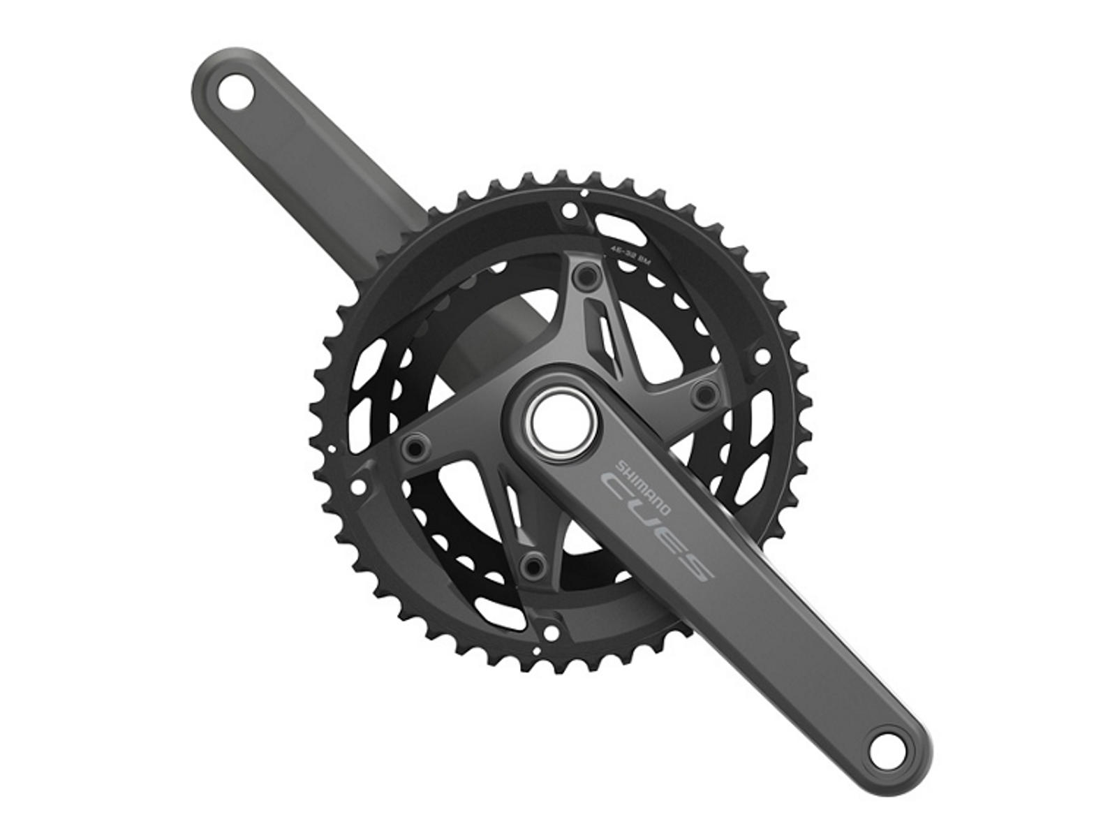Dette Shimano Cues FC-U6010-2 dobbelt kranksæt er med 46 og 32 tands klinger, 170 eller 175mm. lange pedalarme som er til integreret krankaksel. Kranksættet kan bruges sammen med 11 gears kassette og kan kombineres med øvrige Shimano gruppekomponenter med samme gearinterval. Sættet består af højre og venstre pedalarm samt klinger.