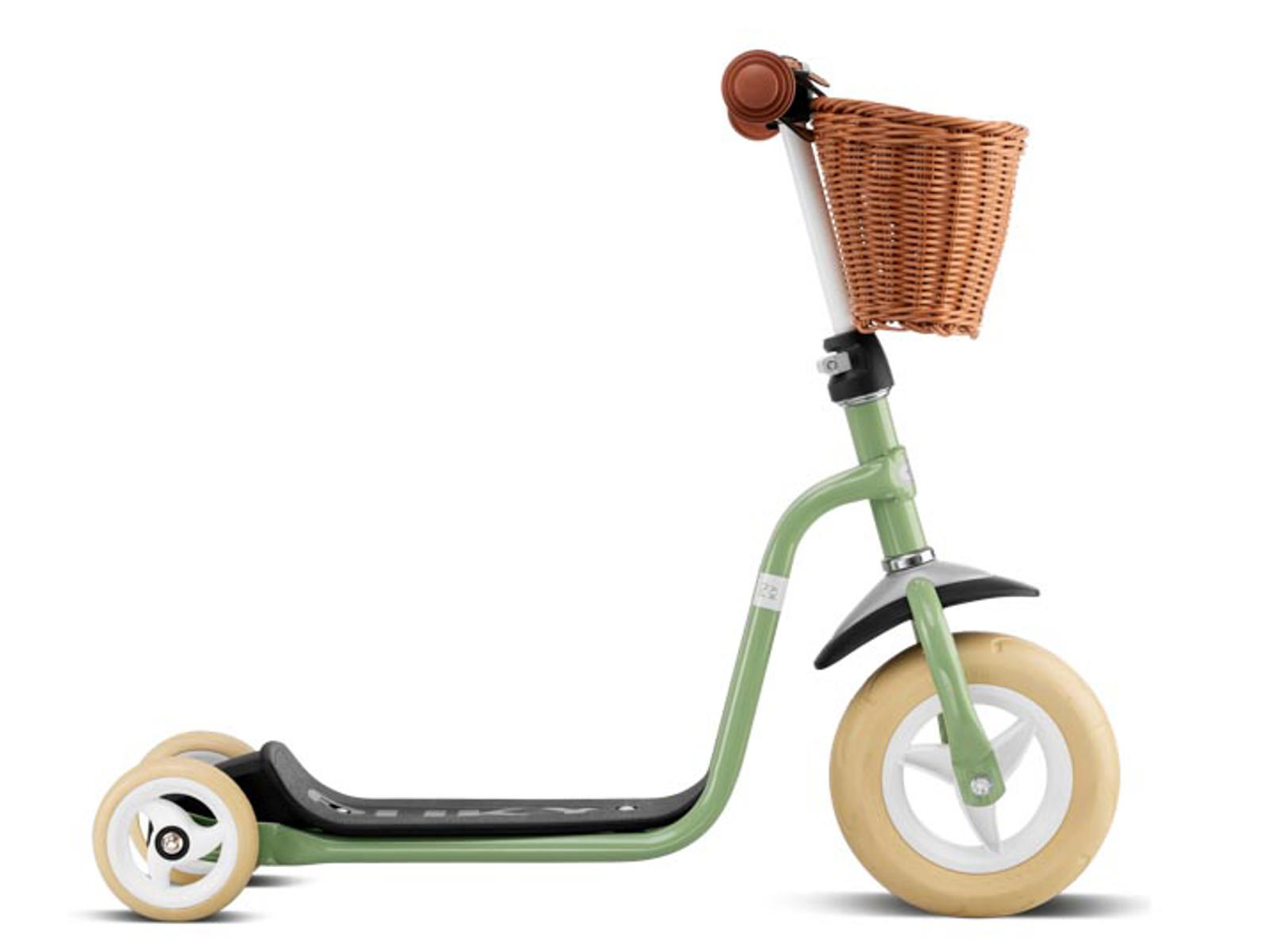 Til denne model medfølger en sød fletkurv som gør det muligt at medbringe bamse, madpakke eller andet på turen.