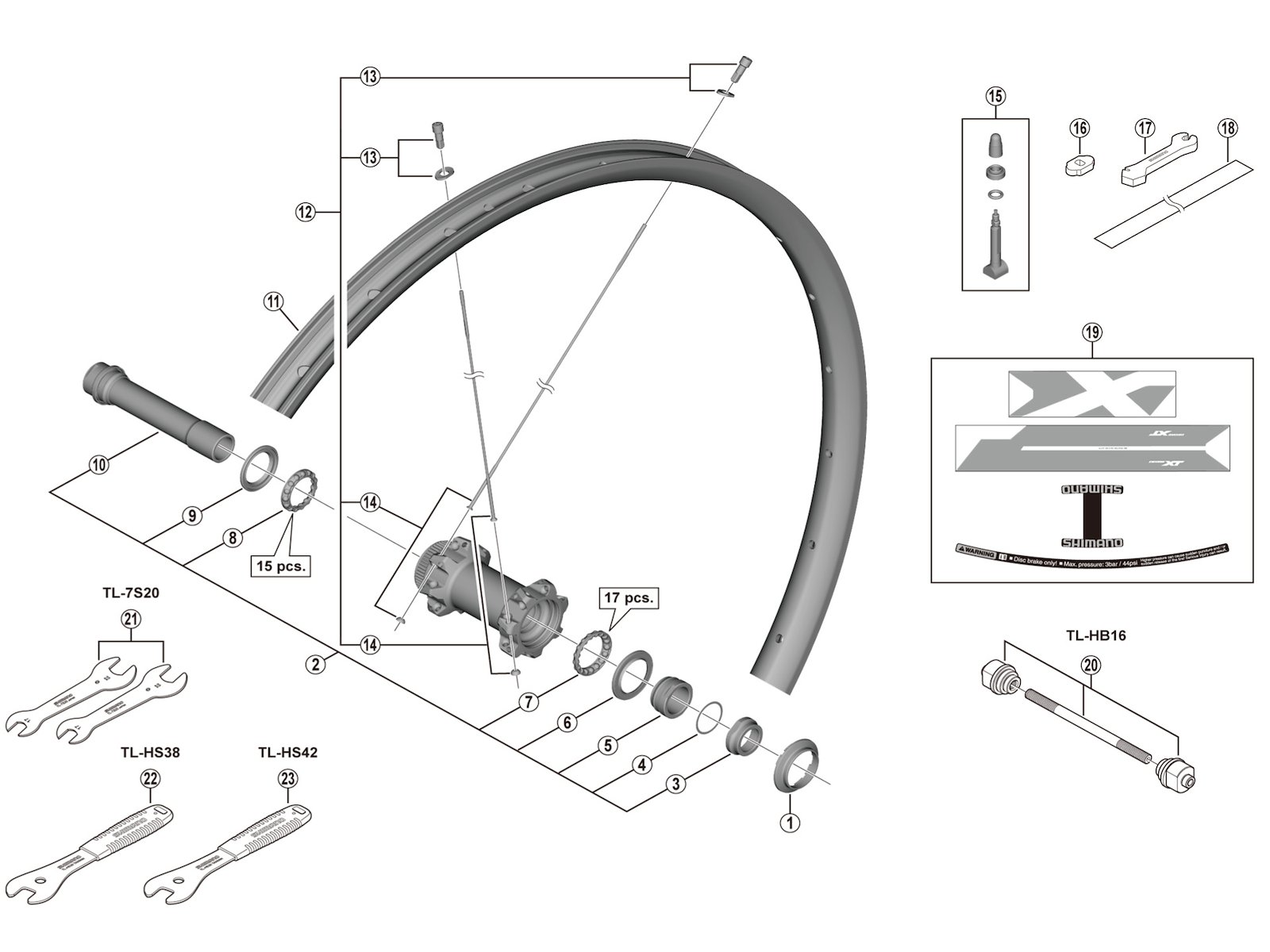 Dette komplette akselsæt passer til Shimano Deore XT forhjul model WH-M8100-TL-F15-B-275.