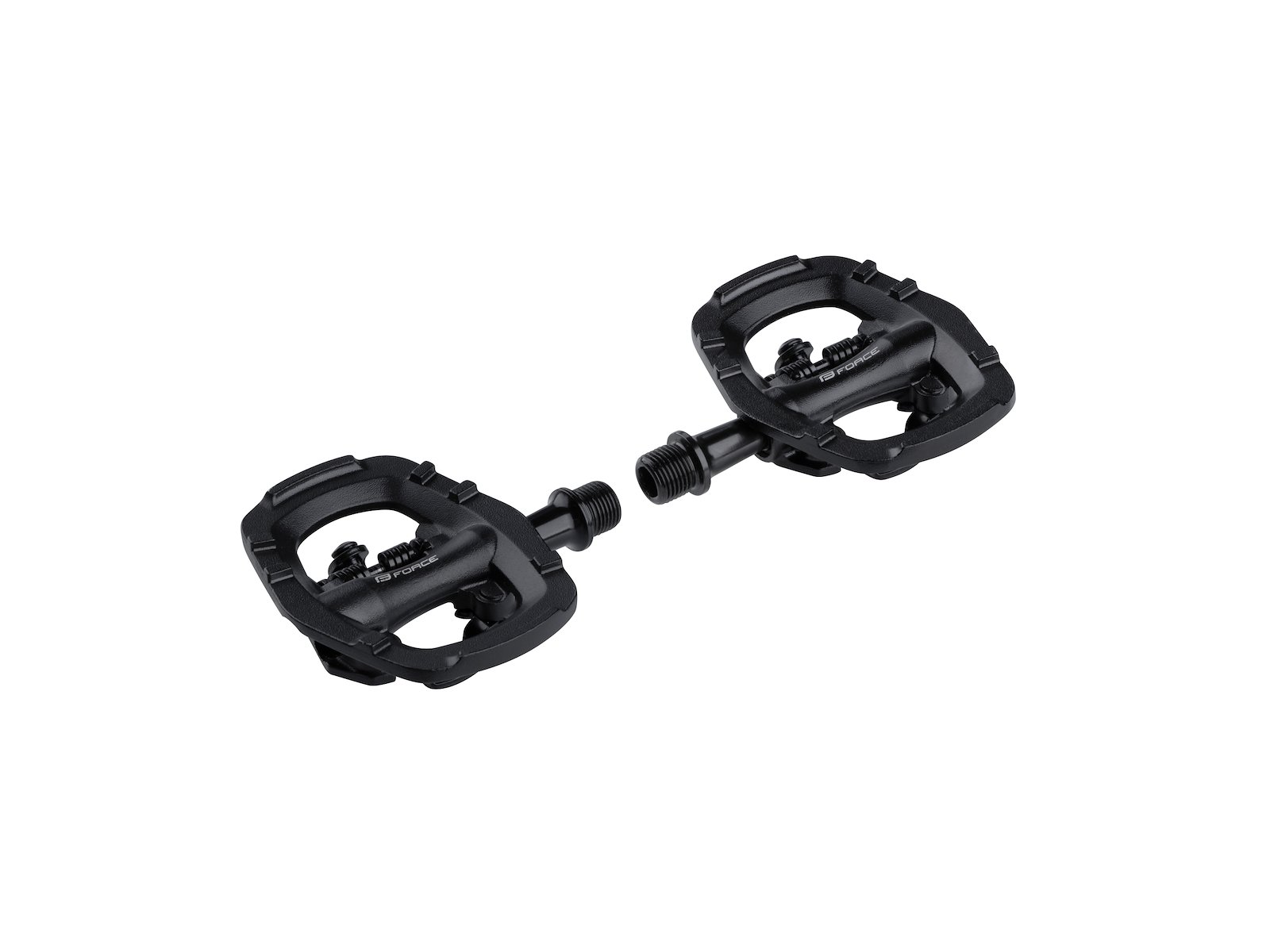 Opdag en ny frihed på dine cykelture med FORCE Select combi pedaler til MTB click/almindelig. Disse alsidige pedaler forener det bedste fra to verdener, så du kan vælge mellem et sikkert klik-system eller en klassisk platform. Uanset om du pendler, kører mountainbike i skoven eller cykler til hverdag, giver pedalerne fleksibilitet og kontrol, der matcher dine behov. Den robuste konstruktion og materielet er designet til at modstå de udfordringer, verdens stier byder på, samtidig med at de skaber bekvemmelighed og komfort under alle cykelture.