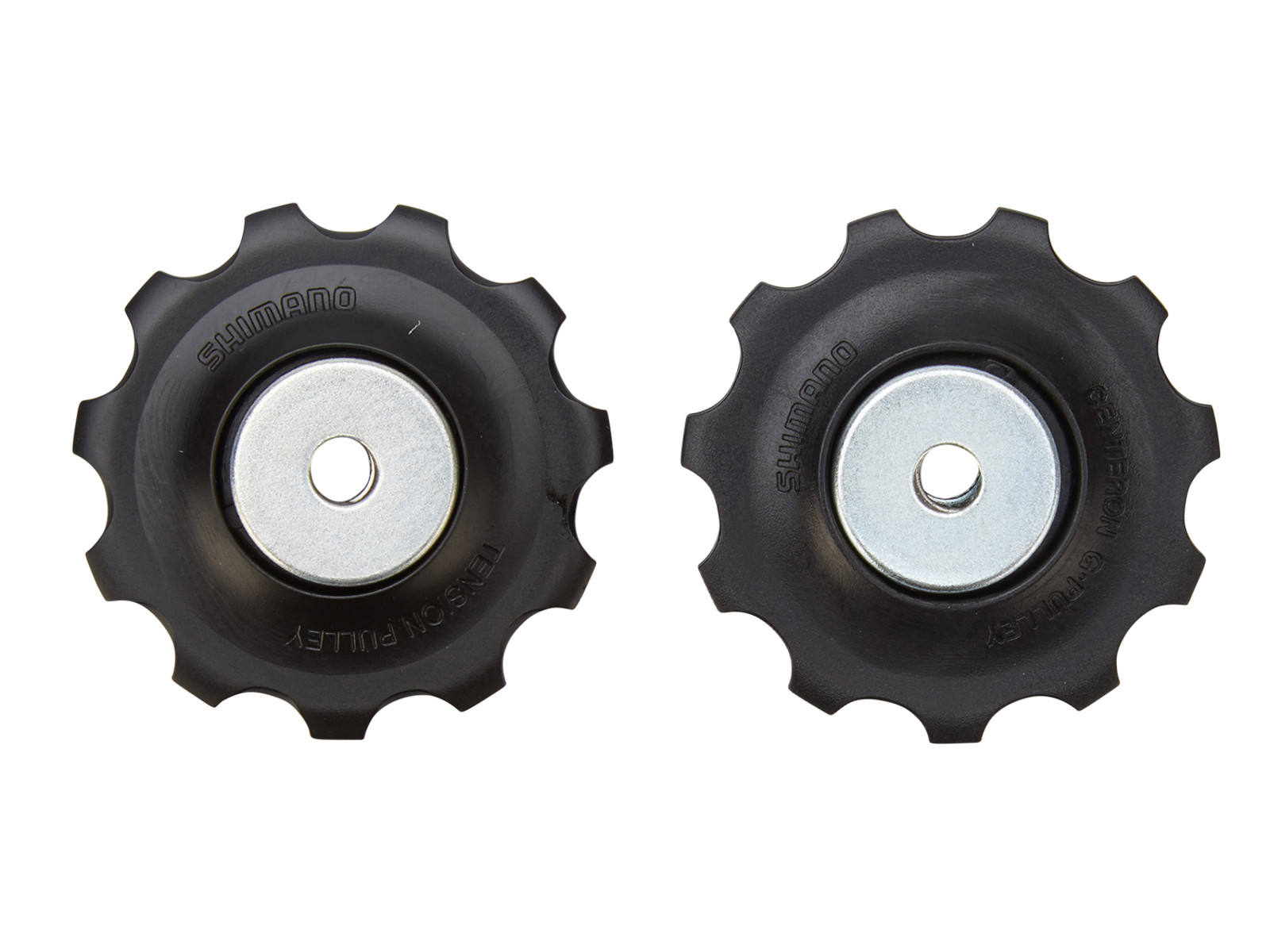 Shimano leverer her et sæt originale pulleyhjul, der passer til Shimanos Deore trekkingbagskifter model RD-T6000 beregnet til 10 gear. Dette sæt består af et øvre og et nedre pulleyhjul med hver 11 tænder. Kædeførerhjulene er lavet i solidt nylonmateriale med en stålbøsning og et enkelt bolthul. Du bør være opmærksom på, at der ikke medfølger bolte til dette sæt.