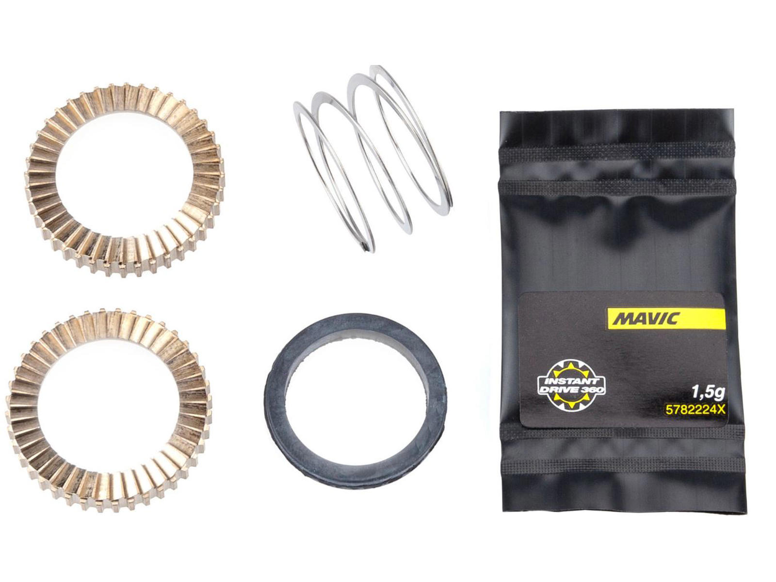 Optimér dine cykelhjul med Mavic Tandskivekit. Sættet indeholder 2 tandlåseskiver, fjeder og smørefedt til Instant Drive 360 QRM Plus H.R. Holdbarhed og ydeevne i top.