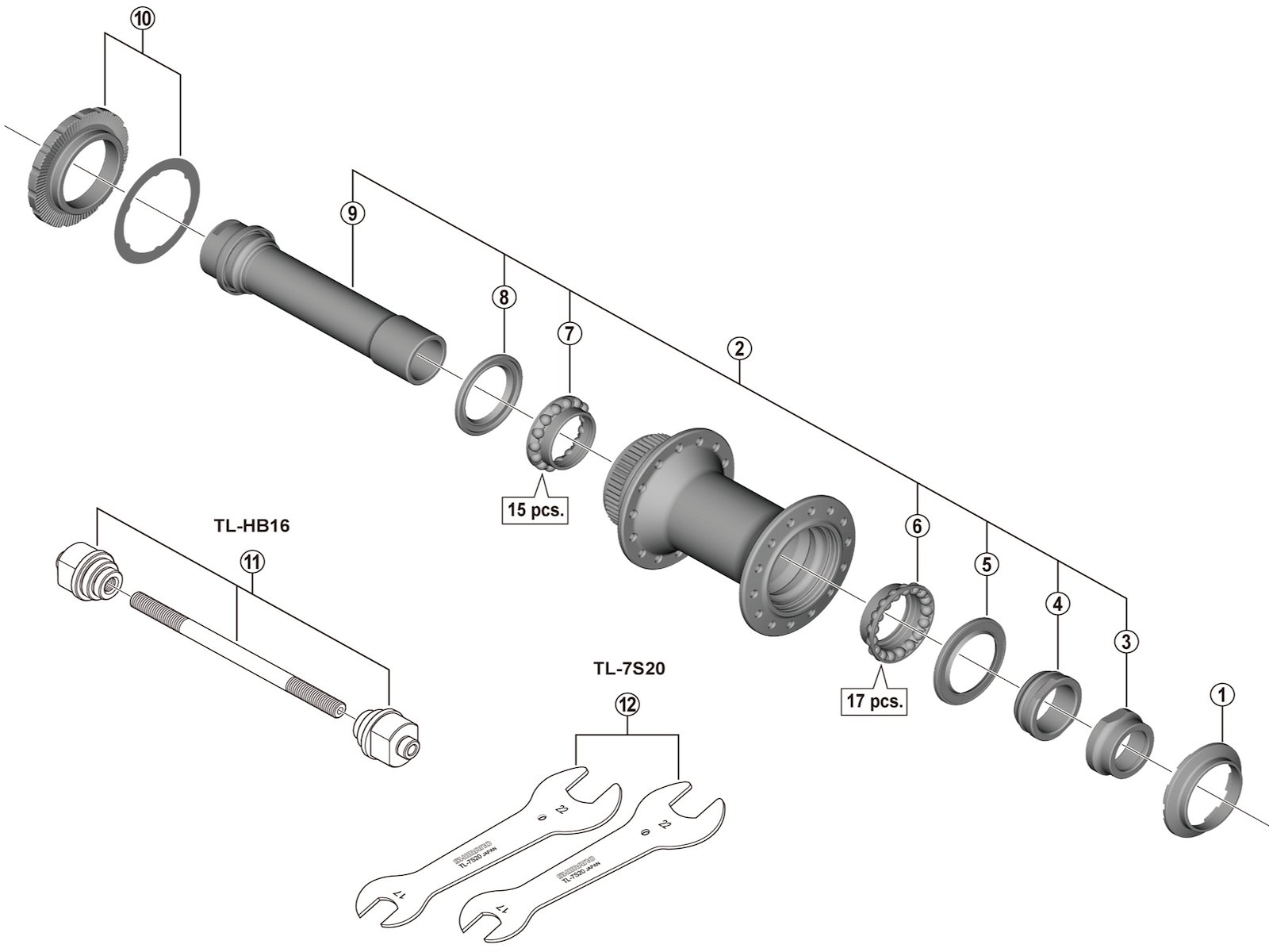 Denne aksel passer til Shimano Deore XTR fornav model HB-M9110.