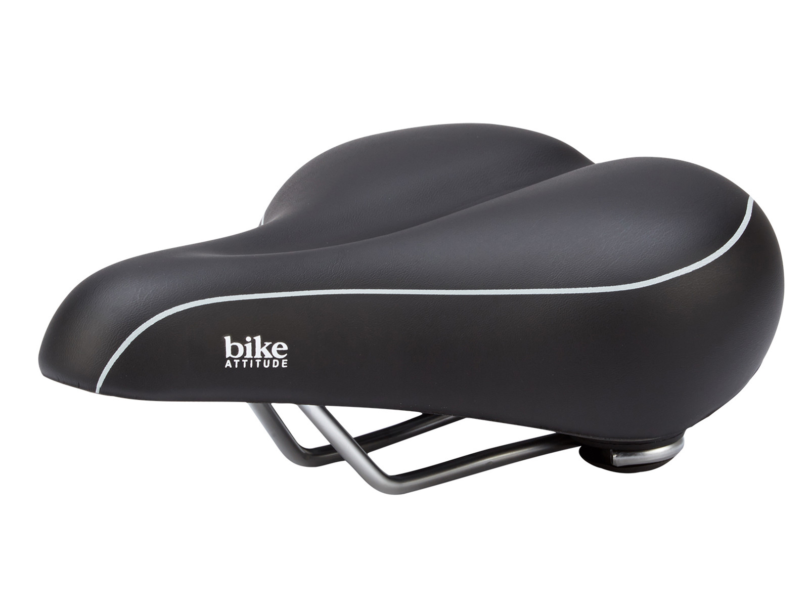 Bike Attitude har produceret denne cykelsadel, som er super komfortabelt opbygget med en lækker blød gel-polstring, som giver en fantastisk stødabsorbering. Ydermere er der bagerst på sadlen minielastomer, som giver yderligere stødabsorbering og ekstra komfort.