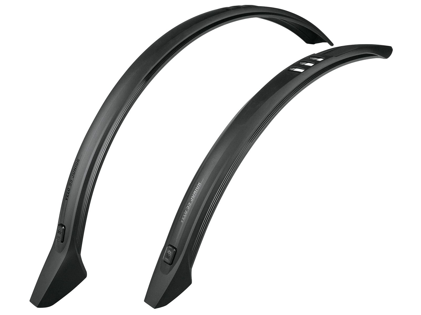 Dette SKS Velo 55 Junior sorte skærmsæt passer til 24" hjul, og med en bredde på 55 mm. passer de til trekking-, cross-, fitness- og mountainbike cykler i junior udgaver. Skærmsættet sikrer dig maksimal beskyttelse, og sørger for at hverken ryg eller fødder bliver våde eller beskidte, når du cykler i regnvejr.