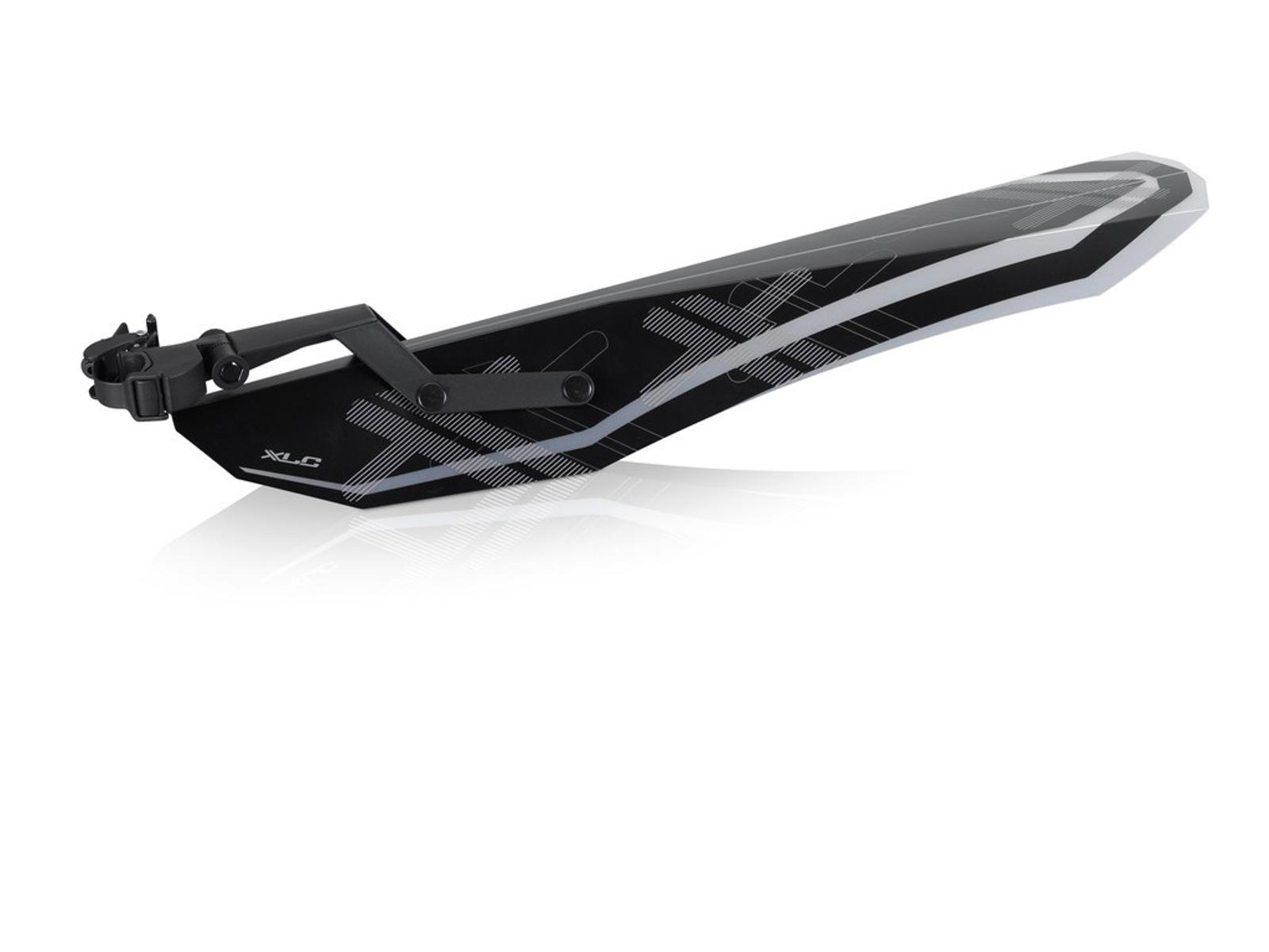Bagskærm fra XLC til montering på sadelpind op til Ø32,5 mm. Skærmen er i blødt og fleksibelt materiale og nem at montere uden værktøj og passer til 24"-26" dæk og max 4" fatbike dæk.