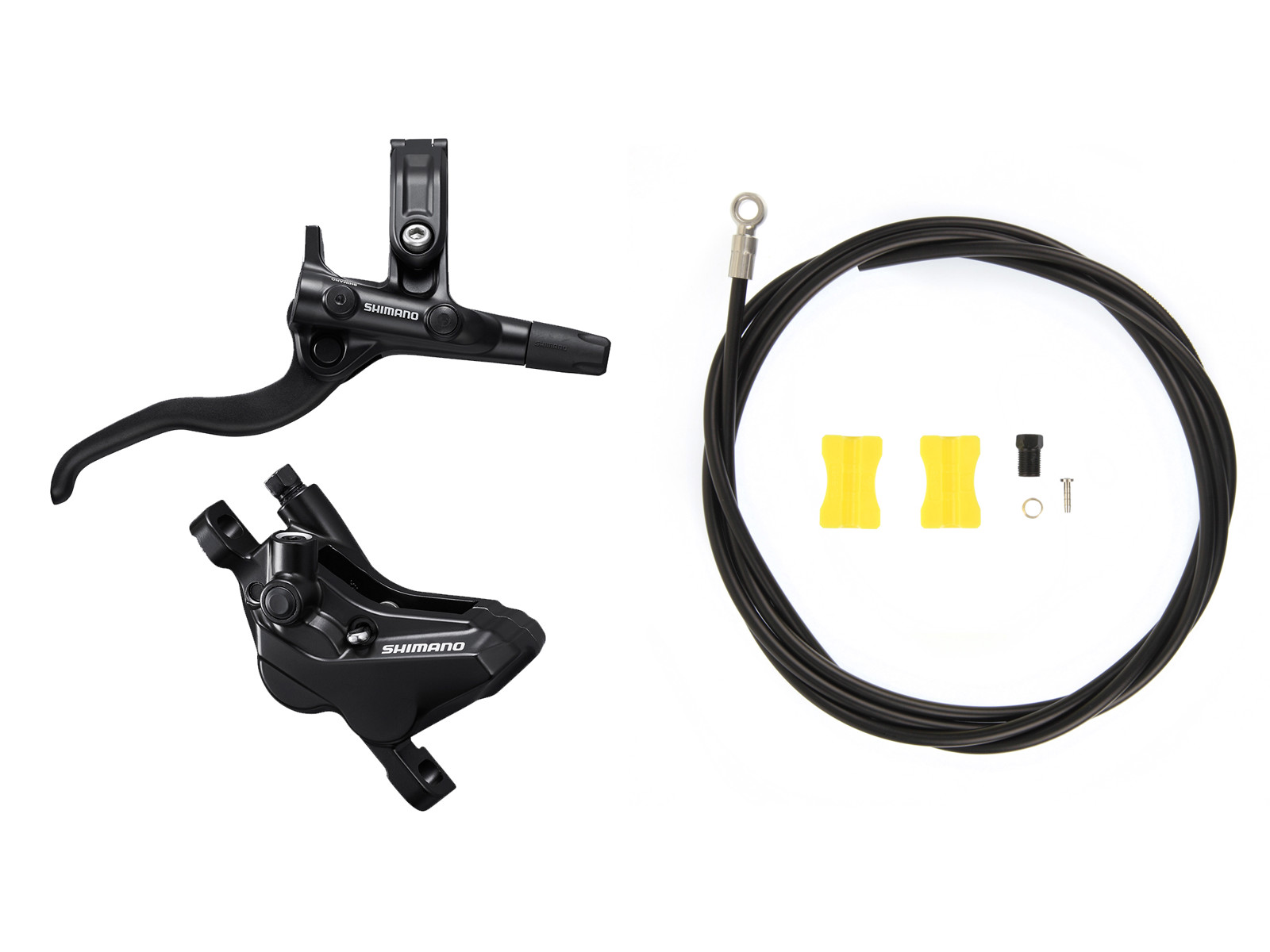 Du får her et komplet Shimano MT420 hydraulisk bremsesæt til bag. Sættet består af et bremsegreb, en kaliber og en bremseslange og kommer for-monteret/samlet - ligesom der er påfyldt olie. Bemærk at sættet ikke omfatter adaptere til bremsekaliber - disse skal købes separat, hvis der er behov for det. Bremsesættet er beregnet til mountainbikes, citybikes og trekking bikes.