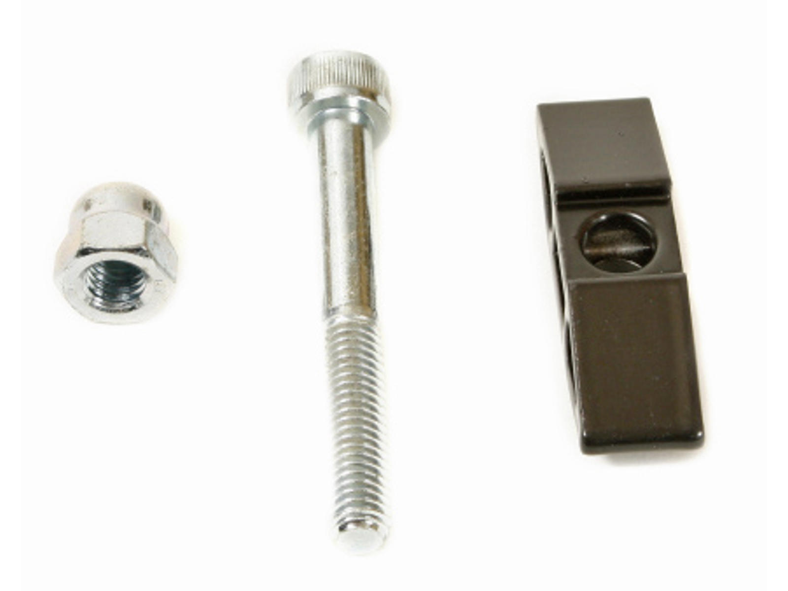 Med lang bolt og møtrik til 6 mm nøgle. Længde 80 mm og 8 mm gevind.