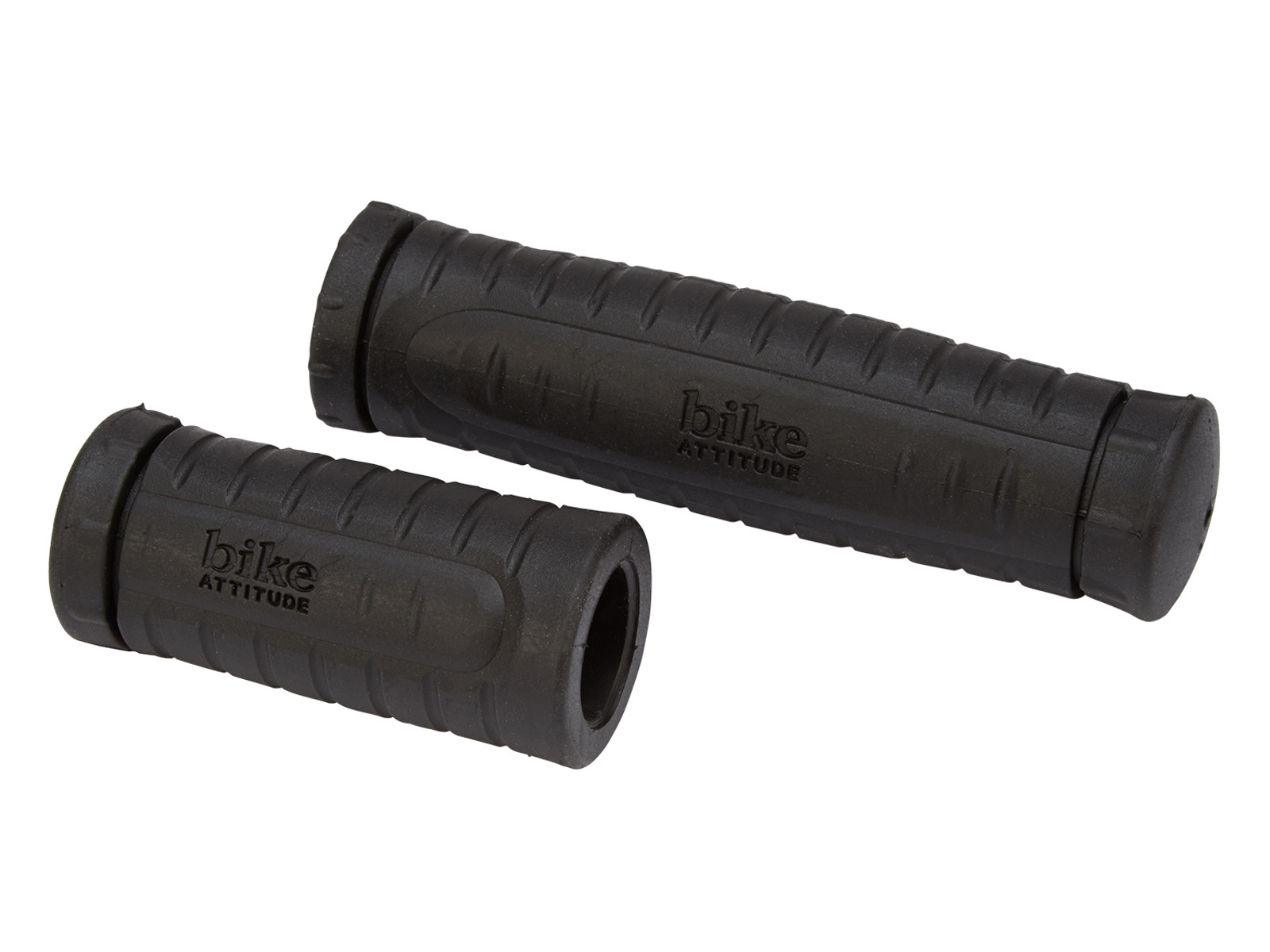 Bike Attitude har fremstillet dette sæt håndtag i et blødt stødabsorberende materiale. Håndtagene er designet med Bike Attitude-logo, og de har 2 forskellige længder. Det længste håndtag er 125 mm, og dette håndtag skal monteres på venstre side af styret. Det korte, højre håndtag er 75 mm langt, og er beregnet til cykler, hvor gearskifteren er et drejegreb. Håndtagenes udvendige diameter er 30 mm, og de er lukket ved enden af styret.