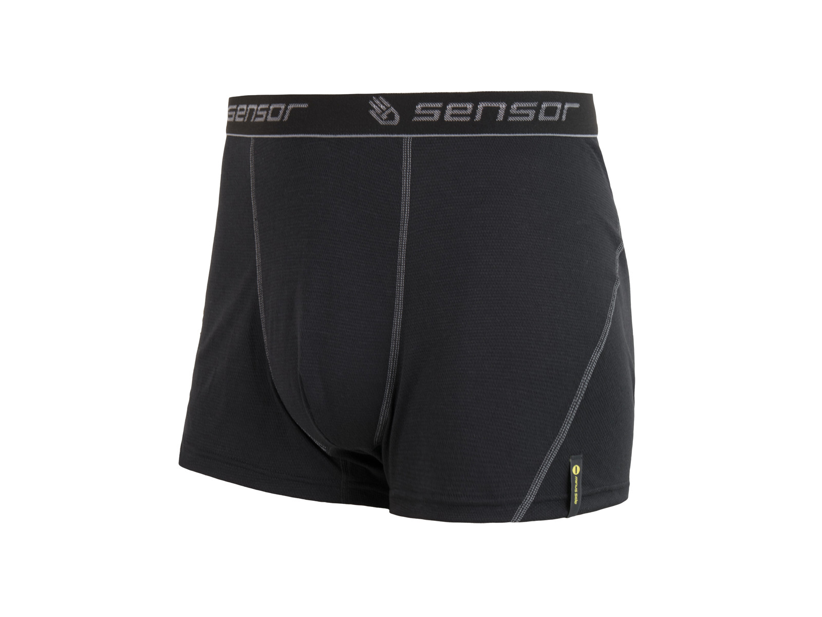 Double Face boxer fra Sensor, der sætter træning i både varme og kolde forhold i perspektiv. Underbukserne giver med en innoverende teknik, gode forudsætninger for træning i to forskellige klimaer. Svedunderbukserne er lavet i et specielt tolags-materiale, syet med "tuck stitching". Double Face har to forskellige funktioner som underbukser, hvor de både kan benyttes i koldt og varmt vejr. Den ene side, der er mærket med "minus", sørger for en optimal varme vha. formet stapelfibre, der giver et komfortabelt og varmt stof. Den anden side, der er mærket med "plus", sørger for en formindskelse af overophedning, igennem det fineste polyester silke. Svedunderbukserne er desuden meget behagelige at have på, da de er designet med flade sømme, så de ikke irriterer dine følsomme dele.