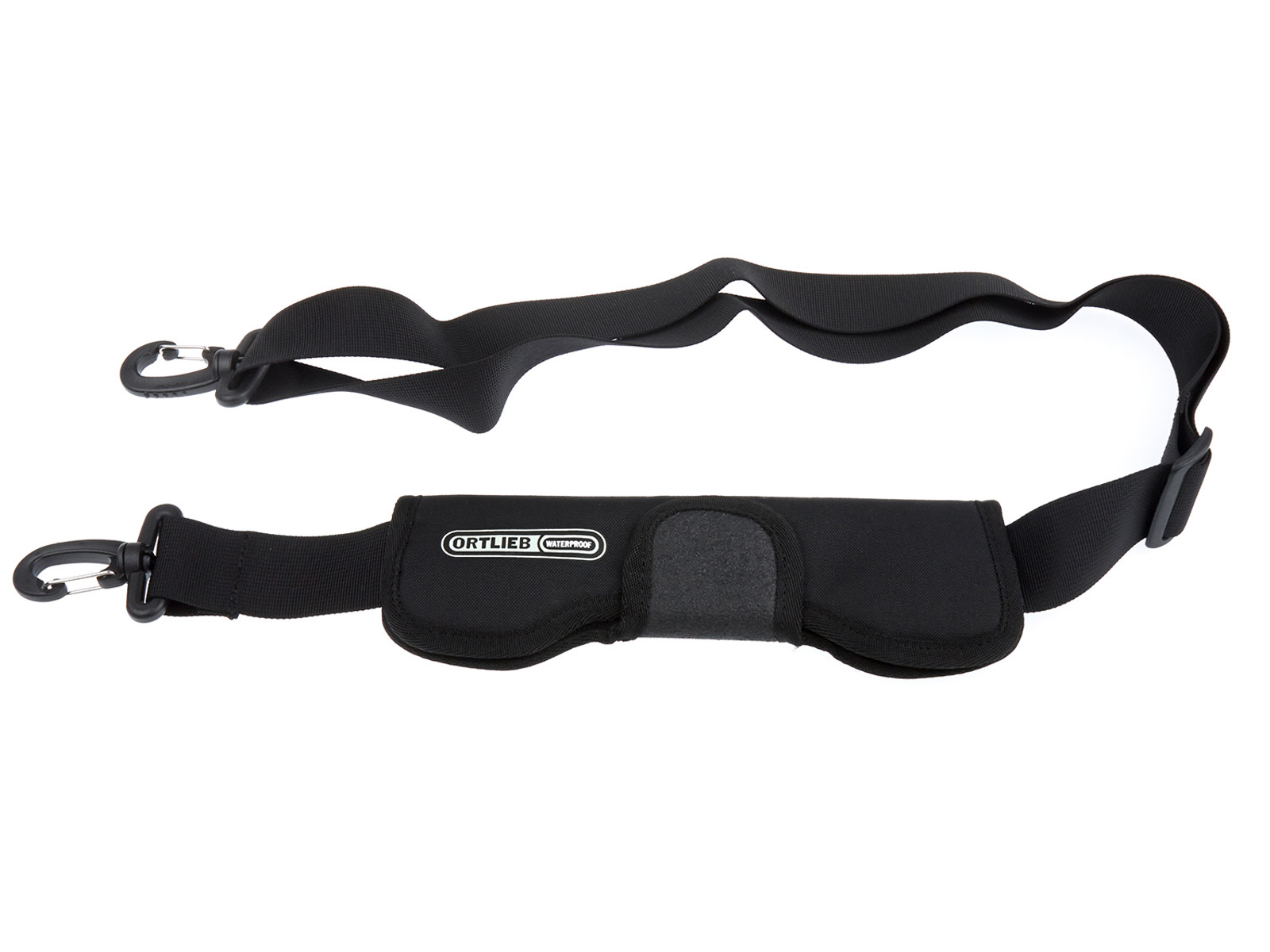 Universal skulderrem fra Ortlieb, remmen passer til stort set alle cykeltasker, der er udstyret med D-ringe til hæftning af rem. Remmen kan justeres i længden og har flytbar polstring.
