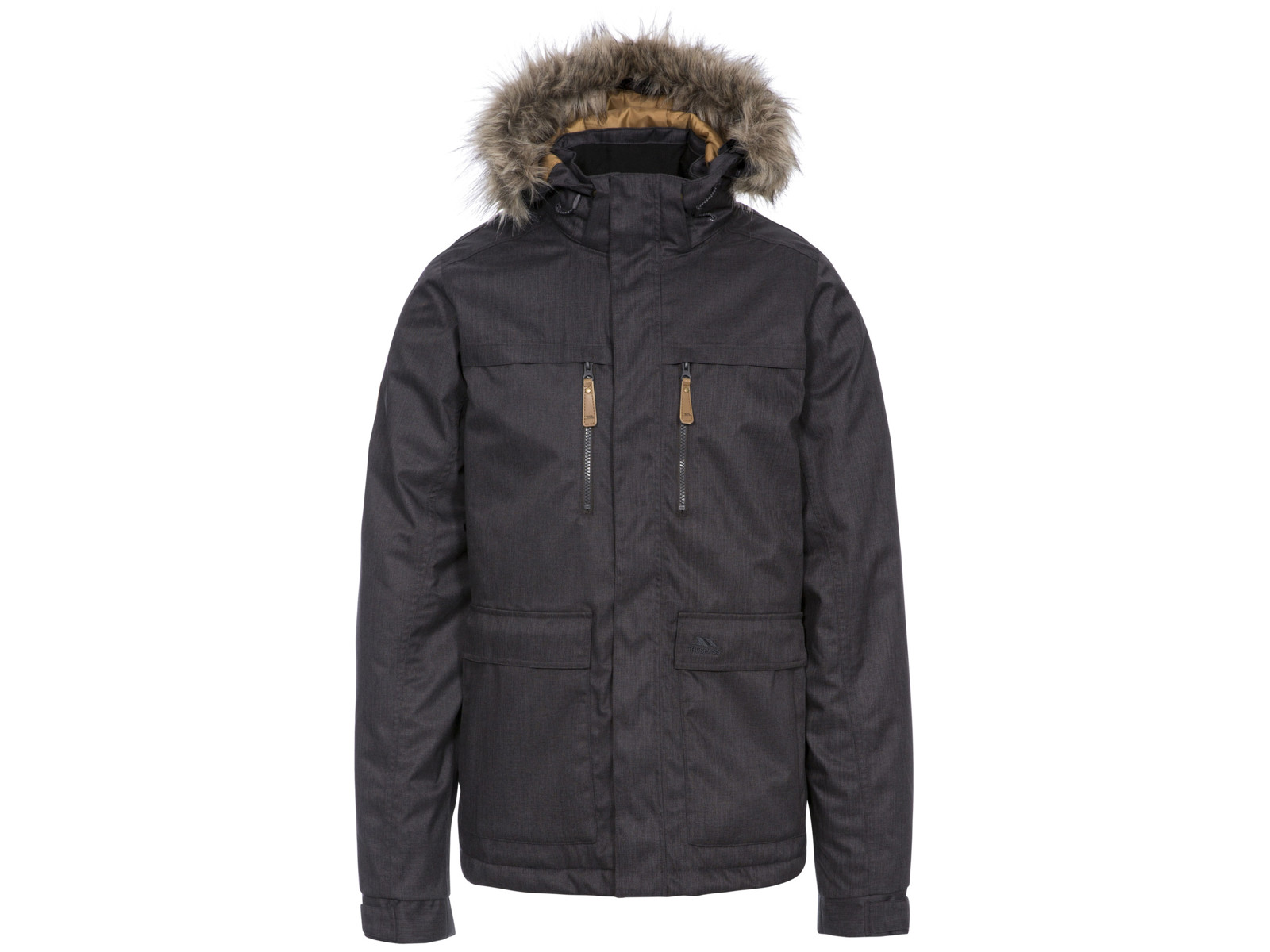 Denne "King Peak" jakke fra trespass er en klassisk og smart jakke, med pelskrave (fake fur) og læder-detaljer.